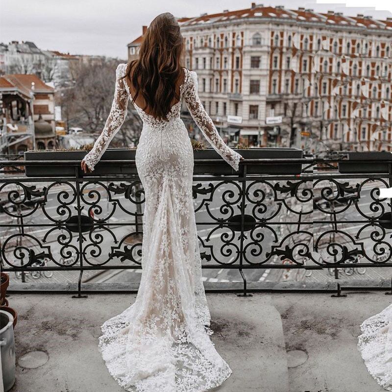 FATAPAESE【雪】ロマンティックマーメイドウェディングドレスイリュージョンディープVネックバックレスソフトレースブライダルガウンパーティーヴェスティド