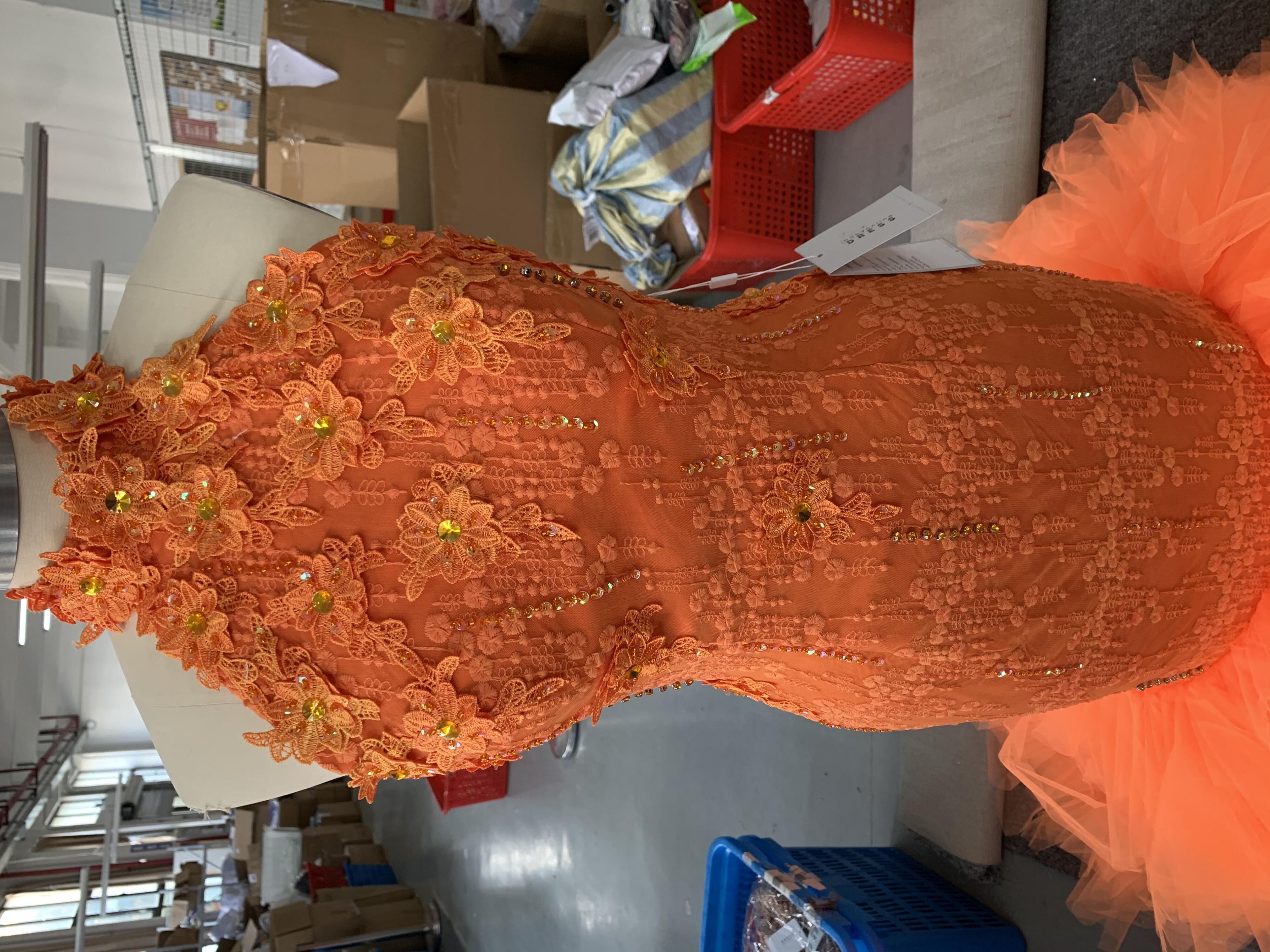 FATAPAESE Gitterキラキラオレンジマーメイドウエディングドレス、ビーズチュール反射ガウンセクシーな背中の開いたイブニングドレスフリル