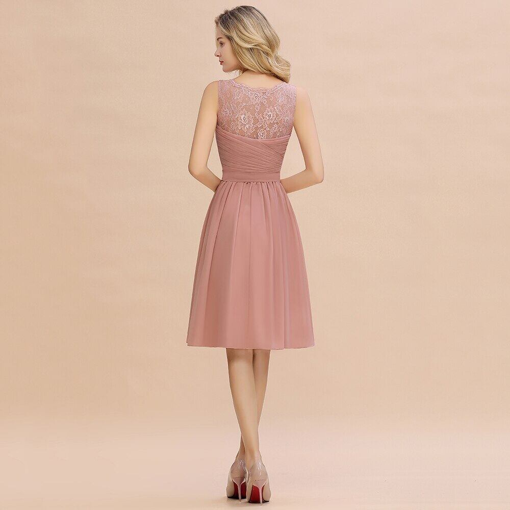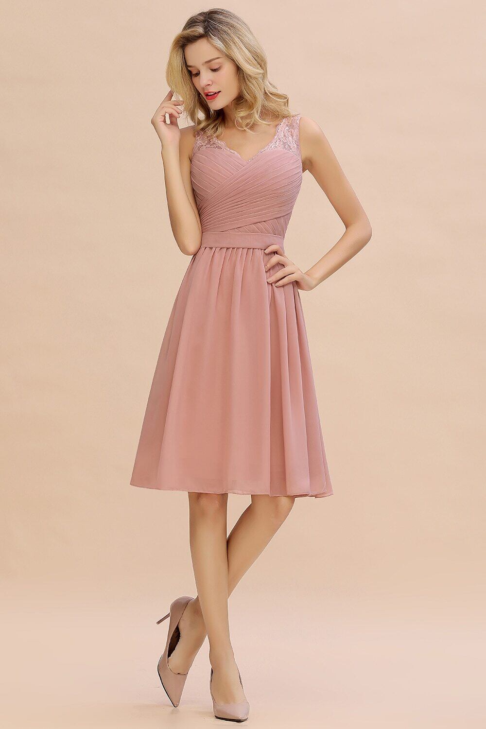 FATAPAESEダスティピンクショートウディングドレスシフォンレースパーティードレス膝丈ブライドメイドガウンVestidoDematura