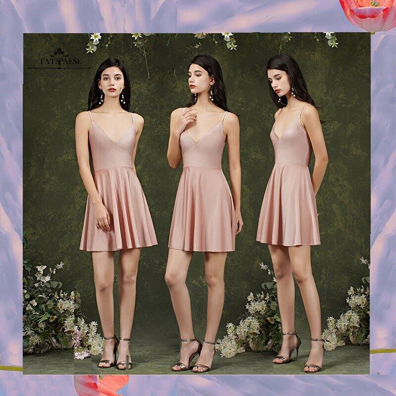 FATAPAESE vestidosdefiestaホモカミングドレススパゲッティストラップセクシーなダスティピンクジュリエットミニドレスサテンスリップドレスオープンバックストラップ