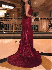 セクシーなサイドスプリットローブデソワレシレーネスパゲッティストラップ背中の開いたロングイブニングドレス2019スパンコールVestidosLargosFiesta