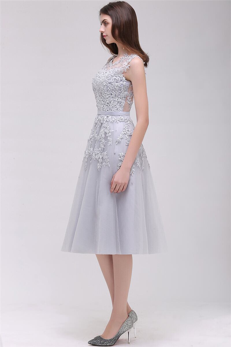 FATAPAESEダストピンクティーレングスレースアップリケカクテルドレスショートウエディングドレスパーティードレスセクシーシアーバックローブデカクテル