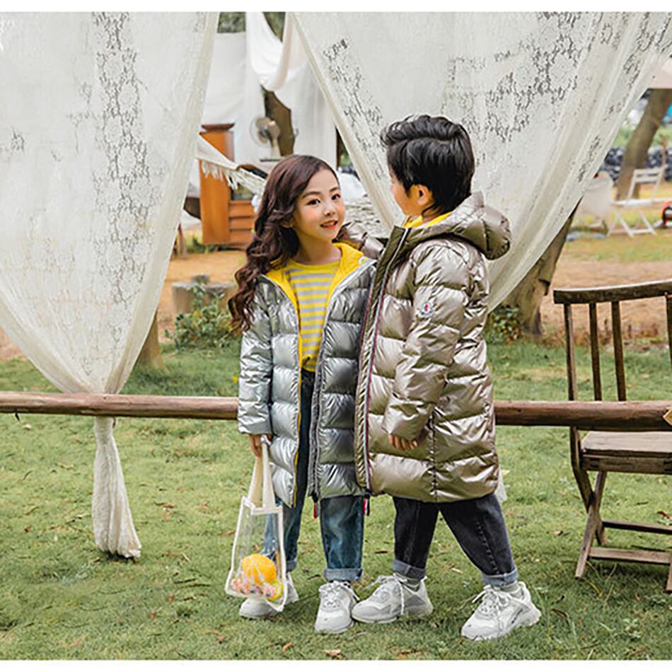 新作 十代の少年少女金属光沢ダウンジャケット子供暖かい冬コート子供厚い服フード付き上着 2-10T