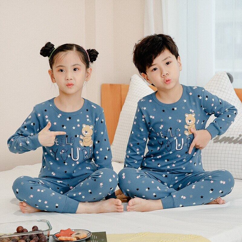 新作 少年少女パジャマ秋綿セット子供漫画パジャマスーツガールズボーイズ長袖ナイトウェアパンツスーツ