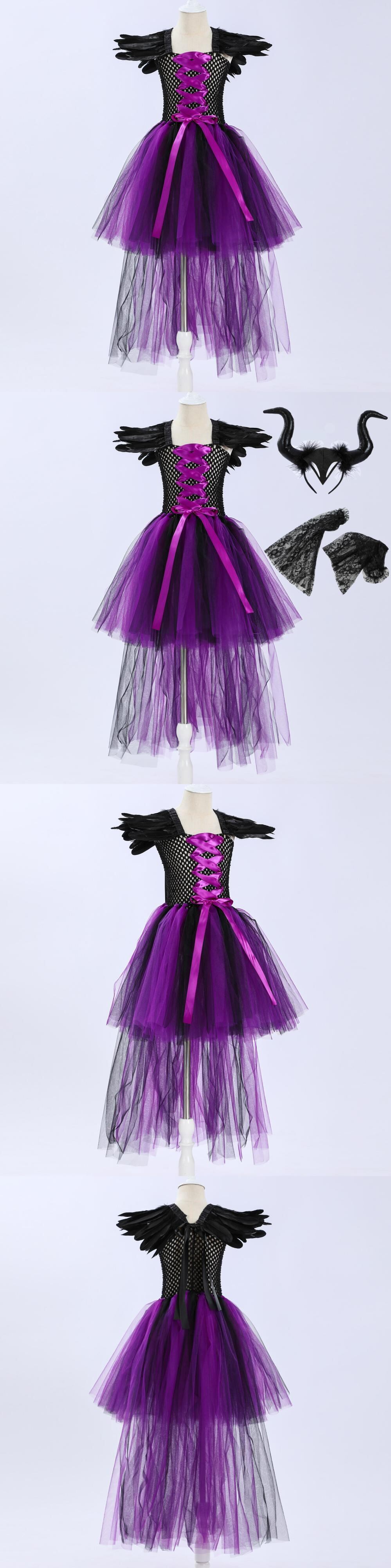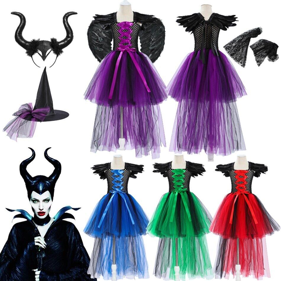 新作 2022悪事悪ダーククイーン女の子デラックス黒子供ドレスコスプレローブパーティーセット