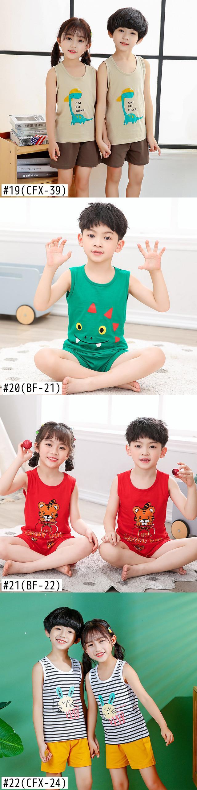 新作 夏の男の子の衣装 2-8T 女の子服子供のパジャマ綿 2 個ベストショートセットパジャマ 2 3 4 5 6 7 8Years