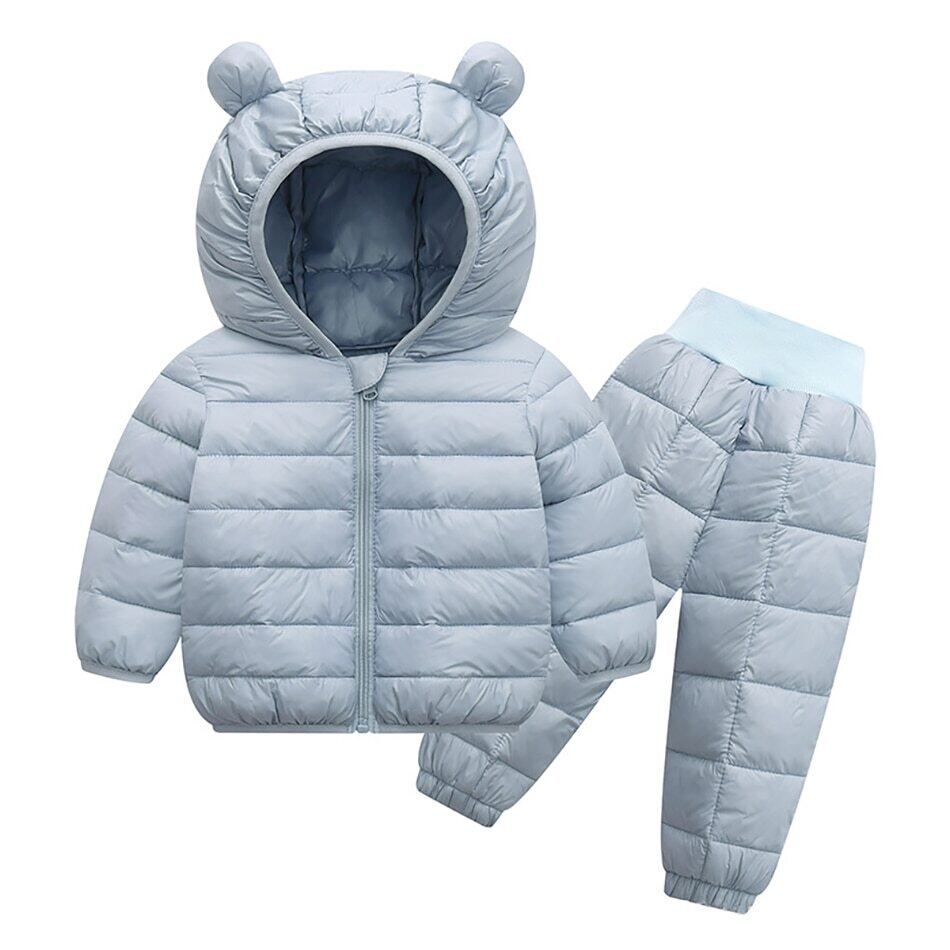 新作 2022 冬の子供男の子服セットダウンジャケットコート + パンツガール 1-5 年子供バブ防寒着 Thicked