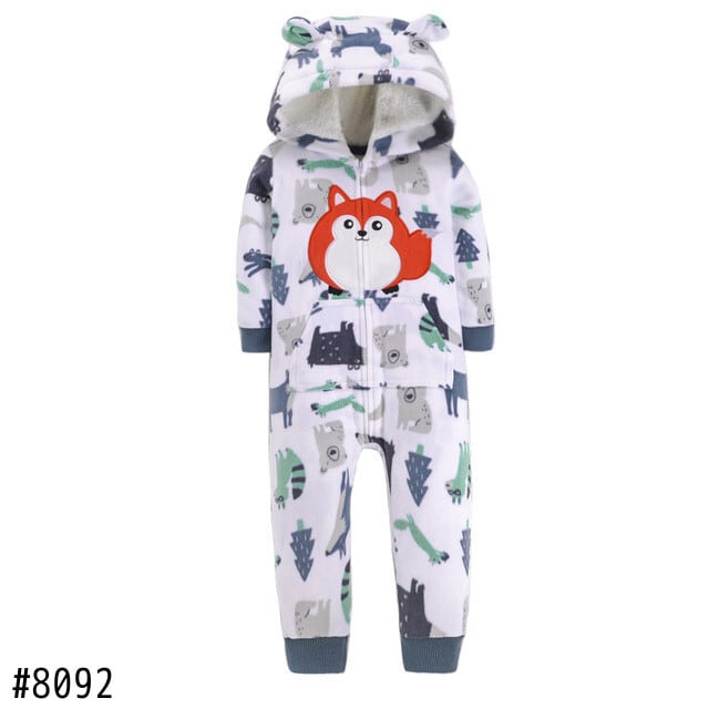 新作 2022 ボーイズガールズ服ポーラーフリースフード付きジッパーロンパース漫画ベビージャンプスーツアニマルパジャマ 9 12 18 24 メートルユニセックス