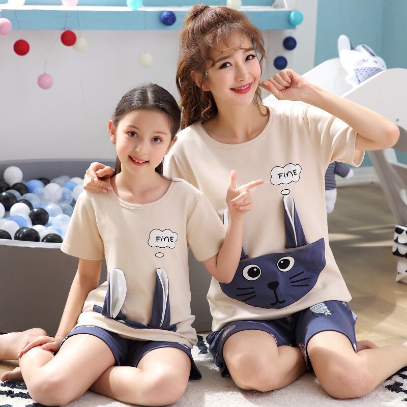 新作 家族マッチング衣装母娘パジャマセットルーズショーツパジャマ姉妹一致服キッズガールナイトウェア
