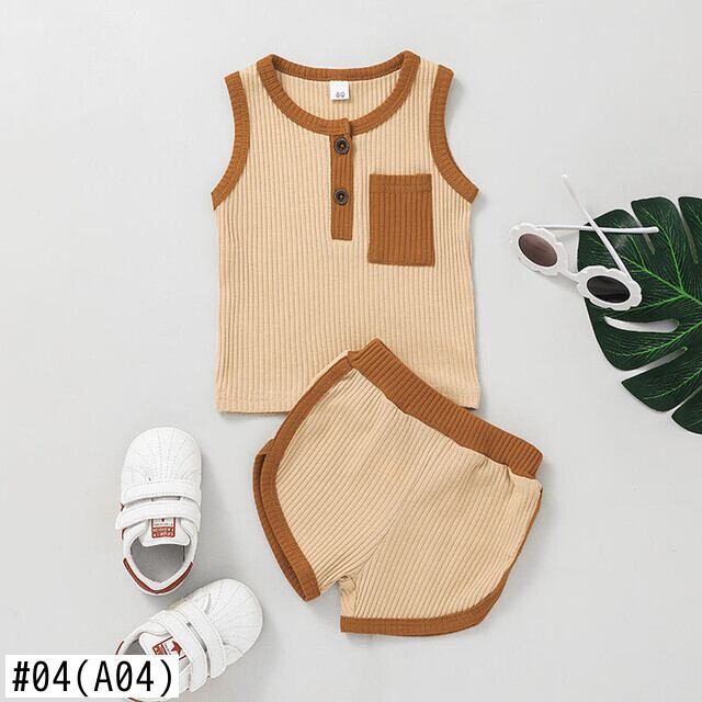 新作 幼児 男の子 女の子 夏生まれ キッズ 赤ちゃん 女の子 リブ ニット 半袖 Tシャツ+ショーツ トラックスーツセット