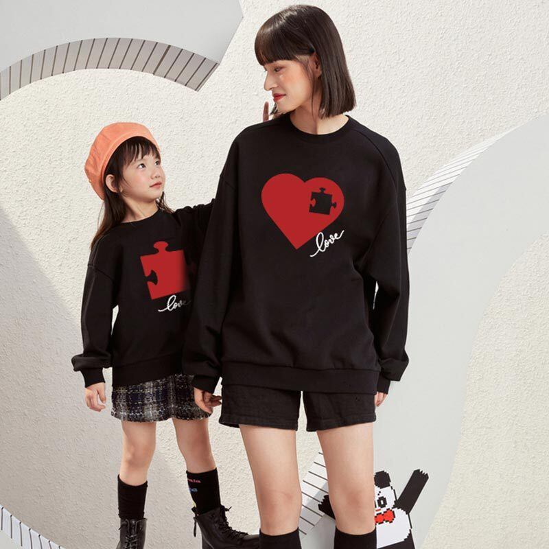 新作 母娘マッチング家族衣装ハートプリント長袖スウェットリトルブラザーマッチガールズ衣装