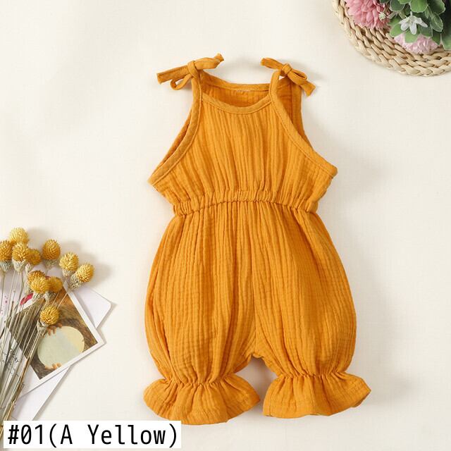 新作 夏の女の赤ちゃん幼児ジャンプスーツホルターソリッドロンパースフリル遊び着服クール生まれ波よだれかけパンツノースリーブ 0-3 年