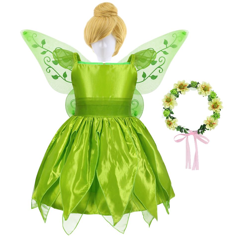 新作 ティンカーベルコスプレガールズベビーパーティーグリーンフラワーフェアリーティンカーベルドレスエルフ蝶の羽セット