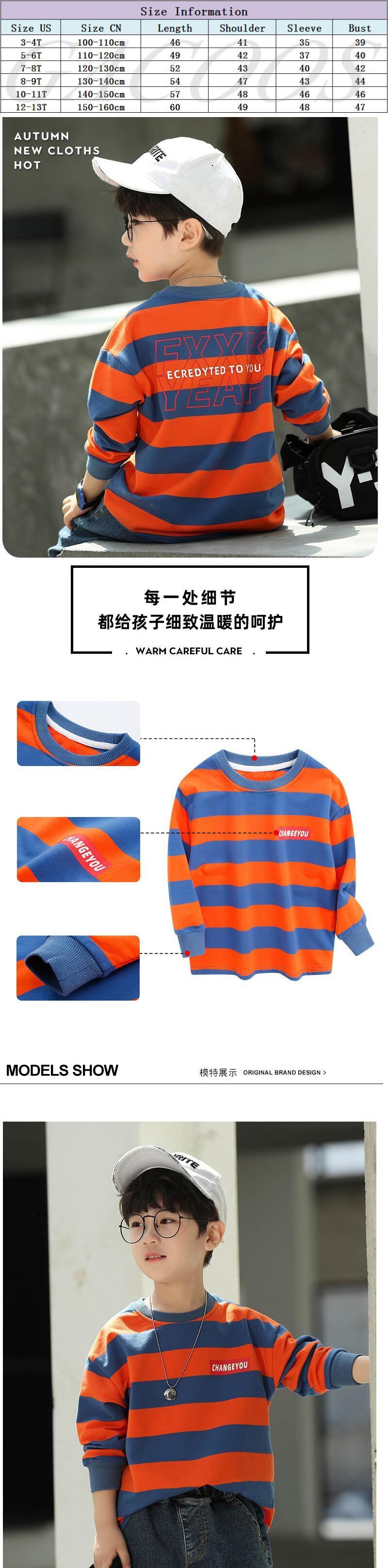 新作 キッズボーイズ服スウェット秋長袖ストライプパーカー子供トップフードトレーナー十代の少年