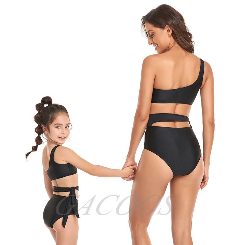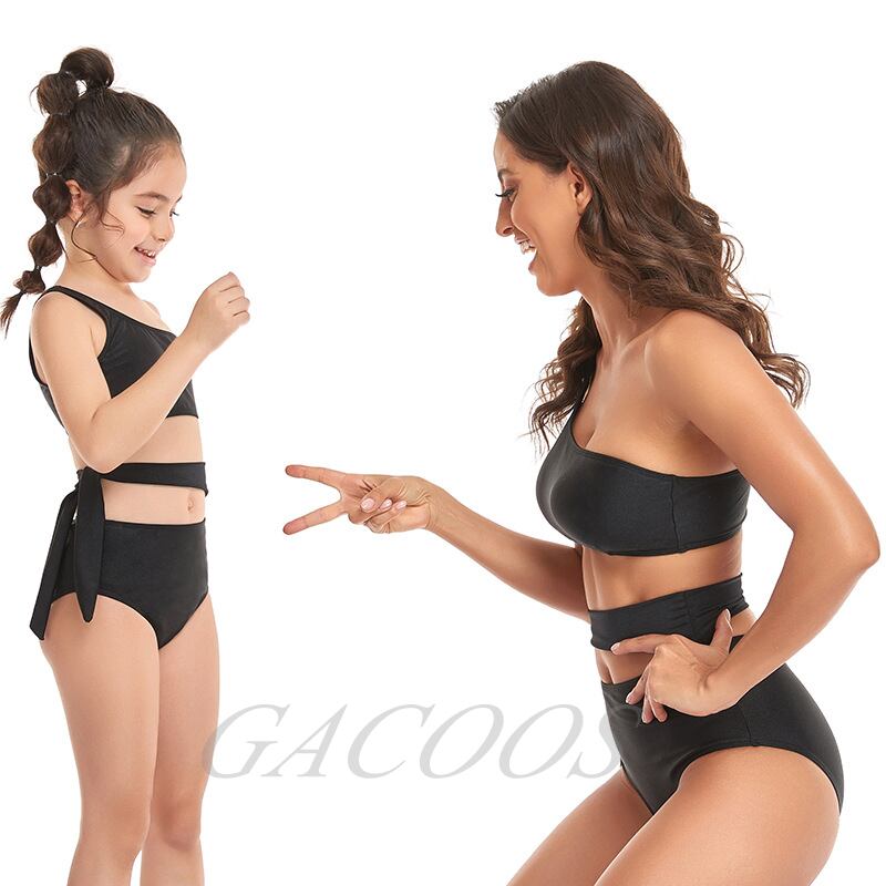 新作 女の赤ちゃんビキニ水着固体水着夏黒ビーチ水着女性のセクシーなウエスト水着家族マッチング衣装