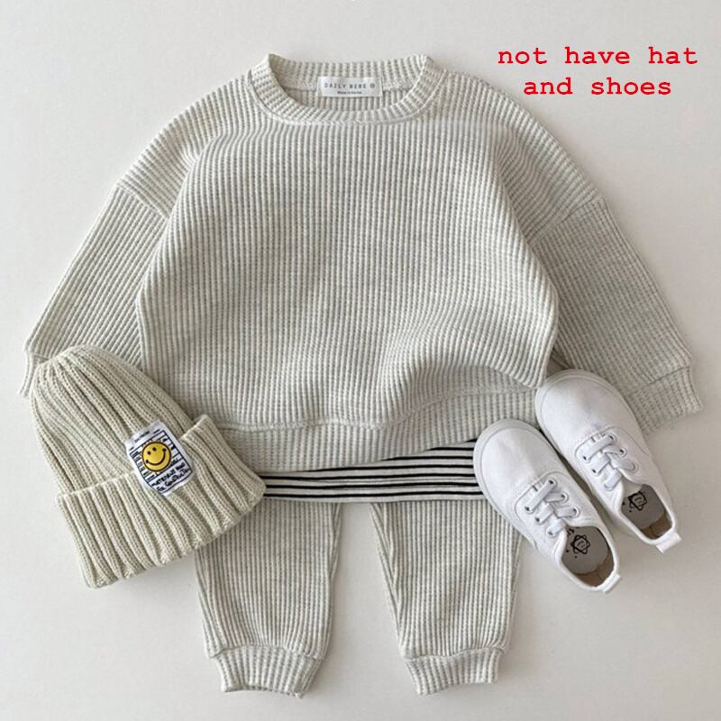 新作 スタイル男の赤ちゃんのニットスーツ秋冬子供セットトップパンツ 2 個女の赤ちゃん服幼児子供服オーバーオール