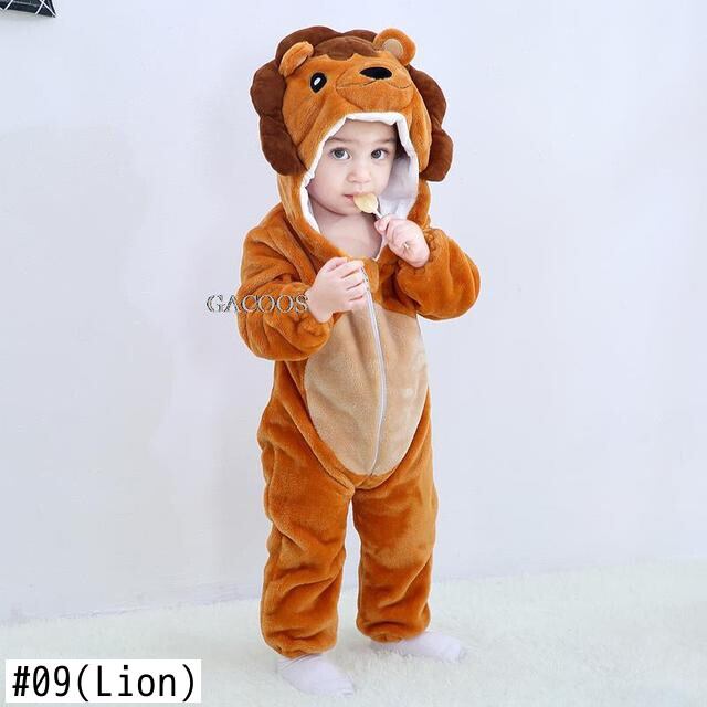 新作 かわいい漫画フランネルベビーロンパースライオンウサギパンダパジャマコットンベビー少年少女動物ベビージャンプスーツ着ぐるみ衣装