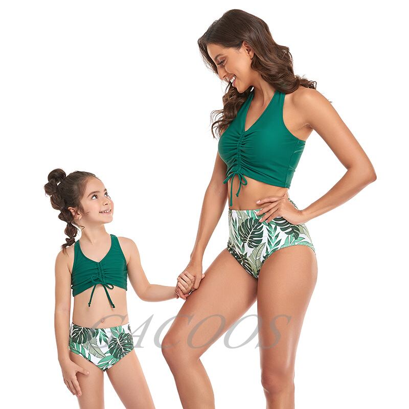 新作 家族マッチング水着女の子母娘マッチルック水着ビキニウエスト花葉 2022 ビーチ水着