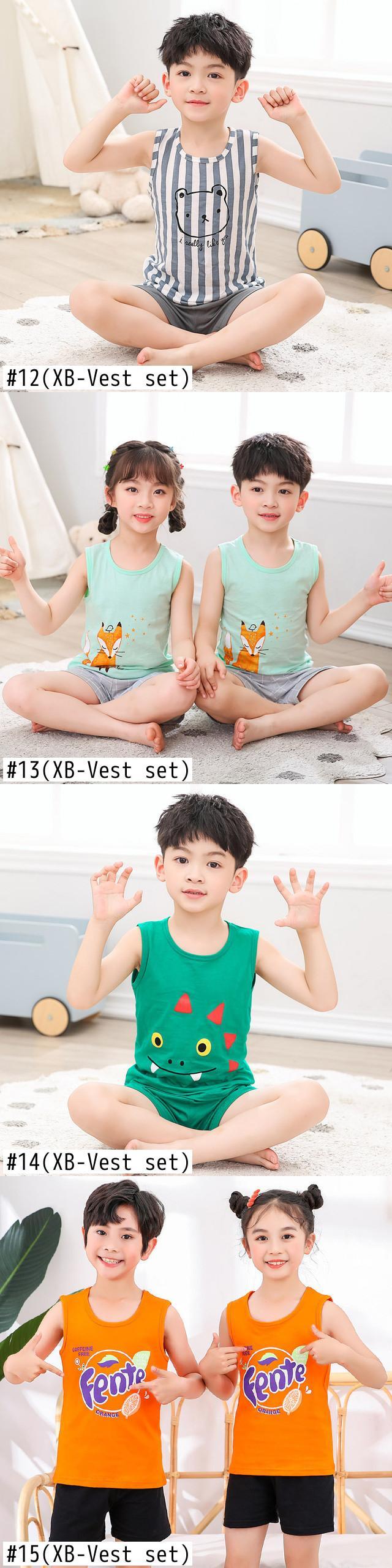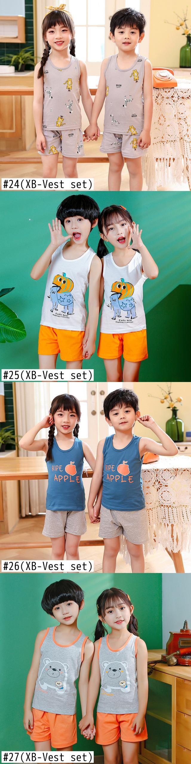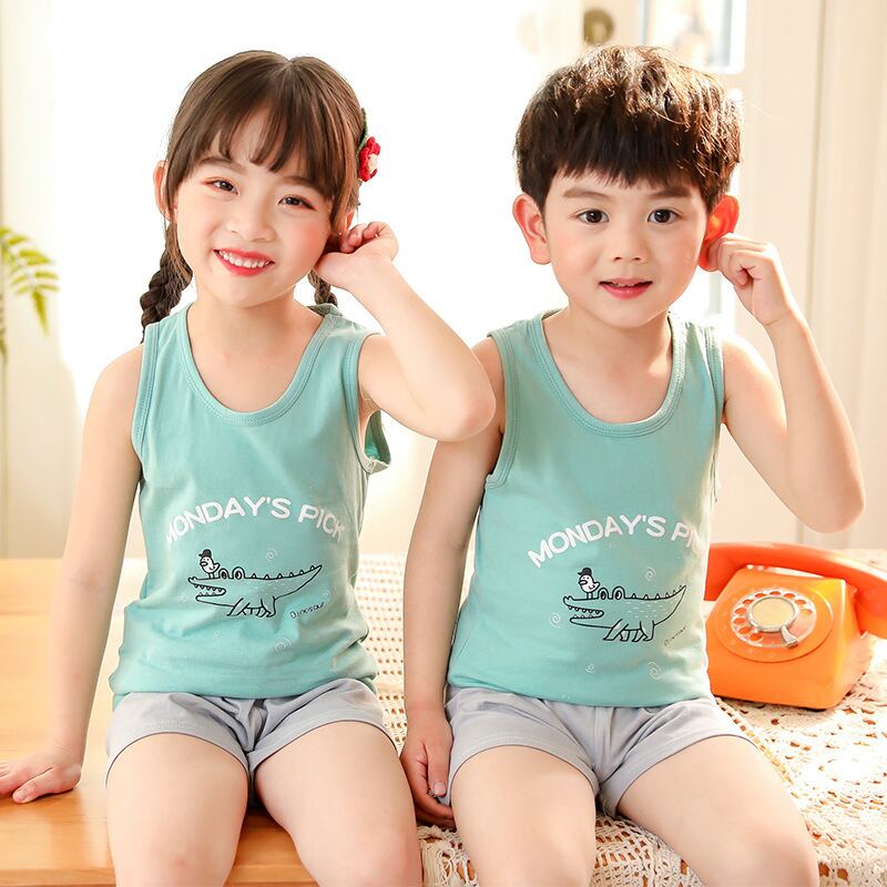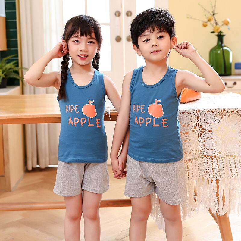 新作 夏の少年少女服コットンパジャマベビーナイトウェアノースリーブパジャマキッズコットン子供セット 2 4 6 8 9Years