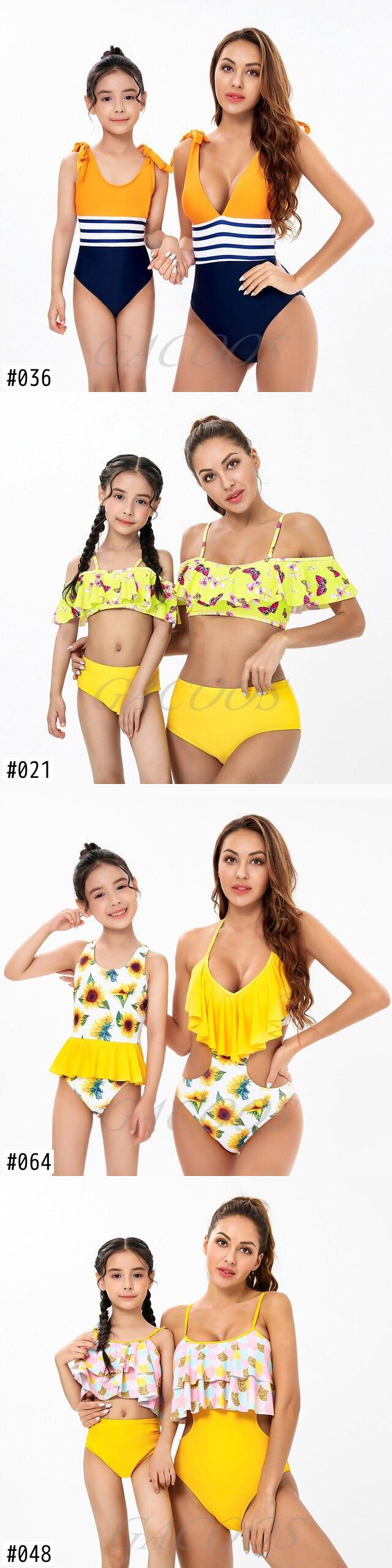 新作 家族マッチング水着衣装母子供娘ひまわりプリント水着夏の女の赤ちゃん水着女性のセクシーなビキニ