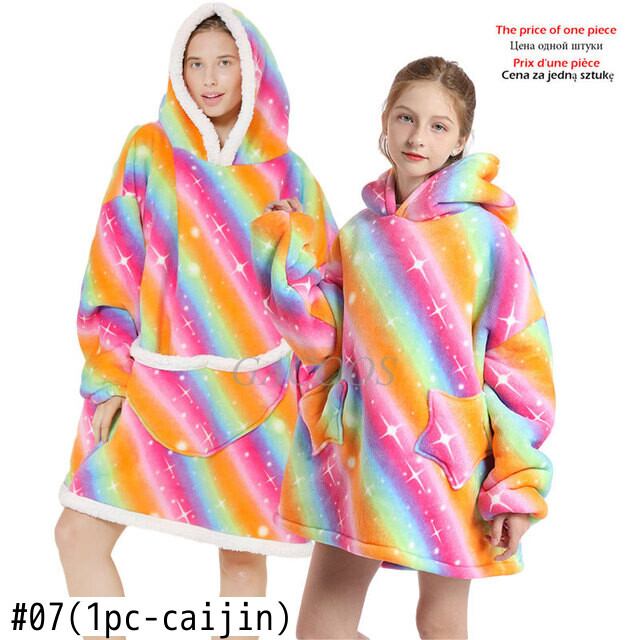 新作 冬のシェルパブランケット家族マッチング服ユニコーンフードスウェットシャツの女の子のホームウェアパジャマフランネル暖かい特大パーカーブランケット