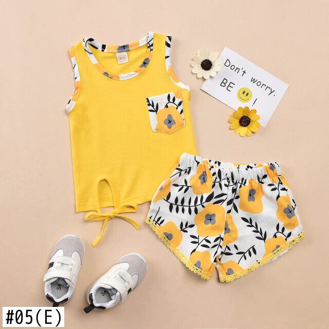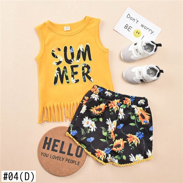 新作 幼児キッズサマーレターTelsセット女の赤ちゃんタンクベストTシャツ+フローラルショートパンツ衣装スーツ6M-4Y