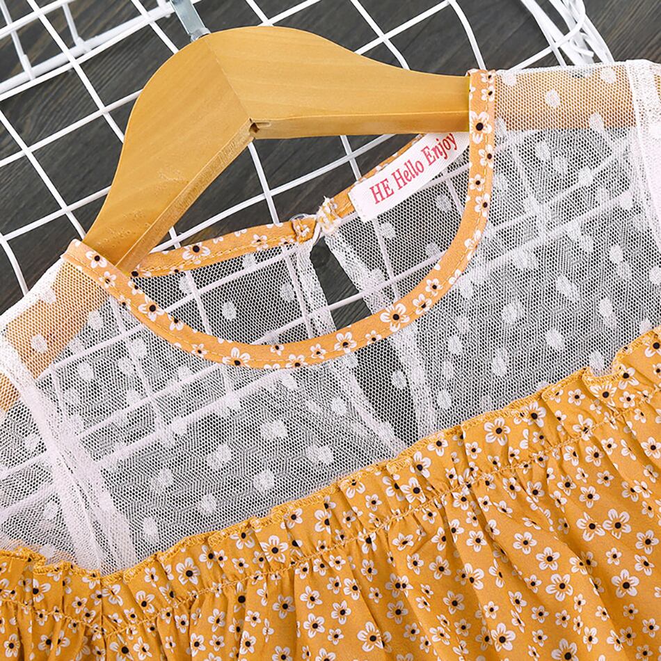 新作 ガールズ 夏 花柄 デイジー ドレス フリルスリーブ メッシュショルダー付き ビーチウェア キッズ JF