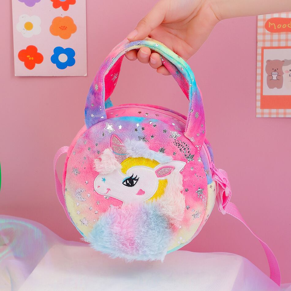 新作 ソフトぬいぐるみユニコーントートバッグ子供動物トレンディなバッグ子供かわいいハンドバッグ女の子冬のショルダーバッグ年パーティーバッグ