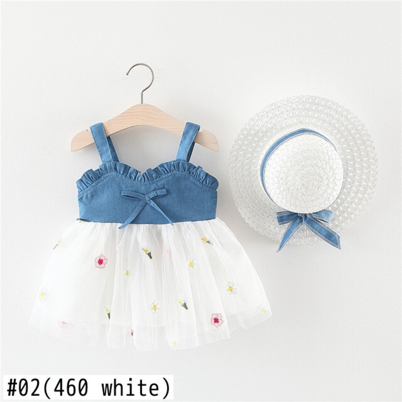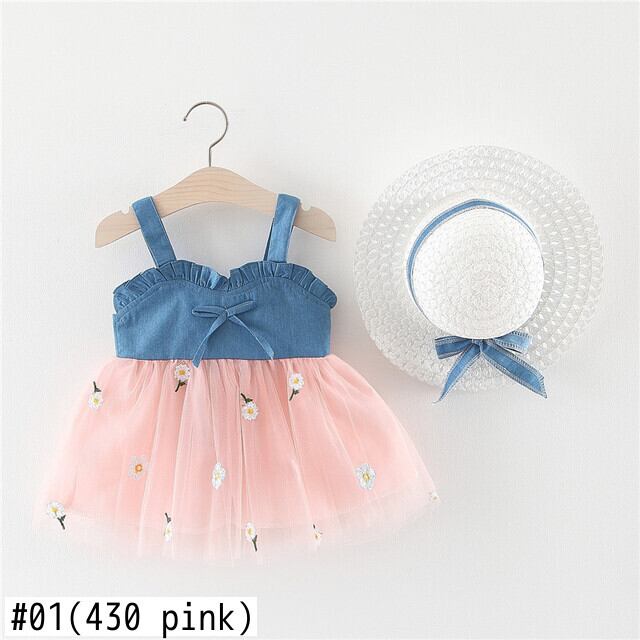 新作 女の赤ちゃんドレス帽子付きコットン子供ドレスサマードレス花柄メッシュガールズノースリーブサンドレスキッズパーティー誕生日ドレス