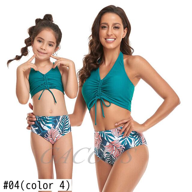 新作 花の女性の水着セット女の子水着母娘子供服ファミリーマッチングルック衣装ママ私ビキニスーツ