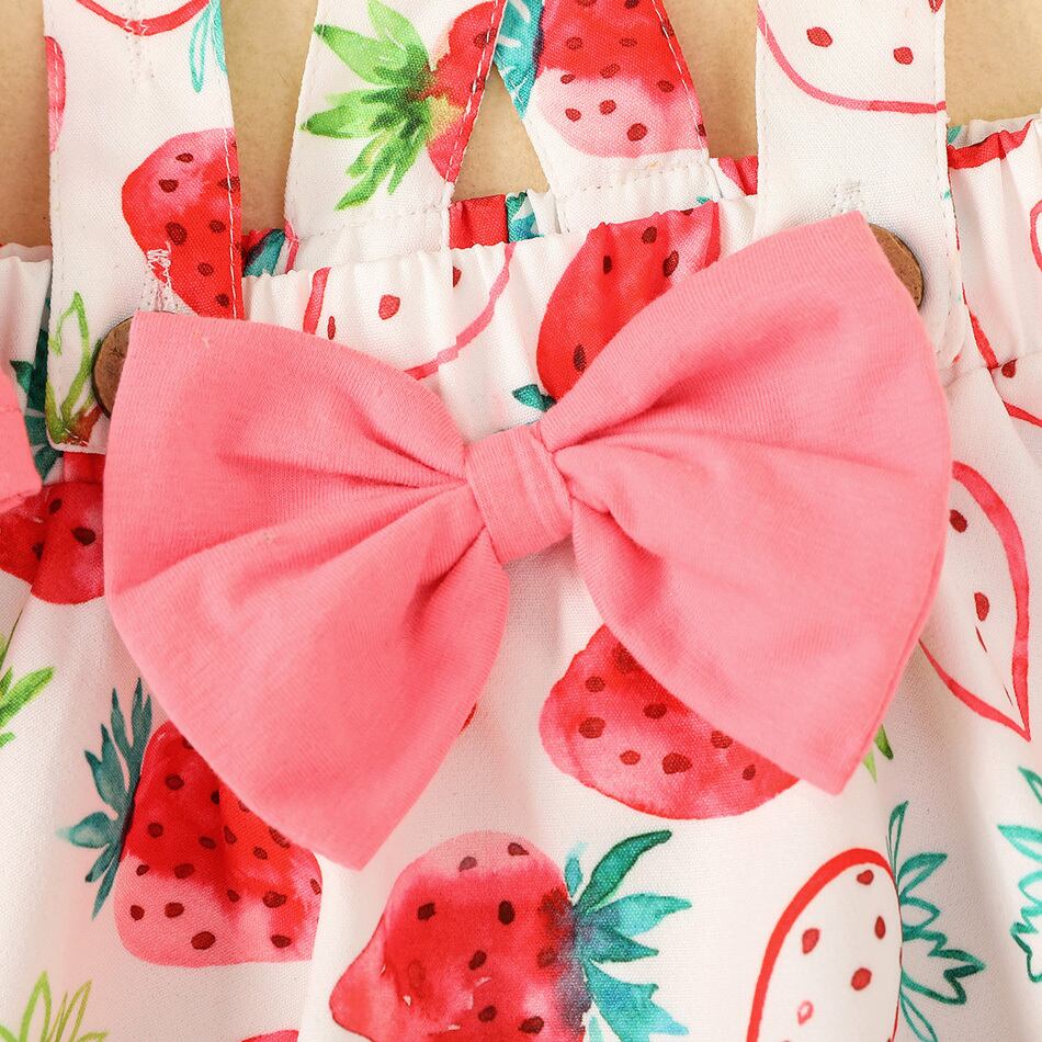 新作 フルーツプリント子供セットキッズベビーガール Tシャツレタートップス + フルーツ花弓サスペンダードレス女の赤ちゃん服セット
