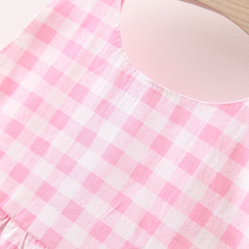 新作 夏の女の赤ちゃん服プリントチェック柄ちょう結びパーティードレス幼児幼児新生児ドレス帽子 2 点セット Vestidos
