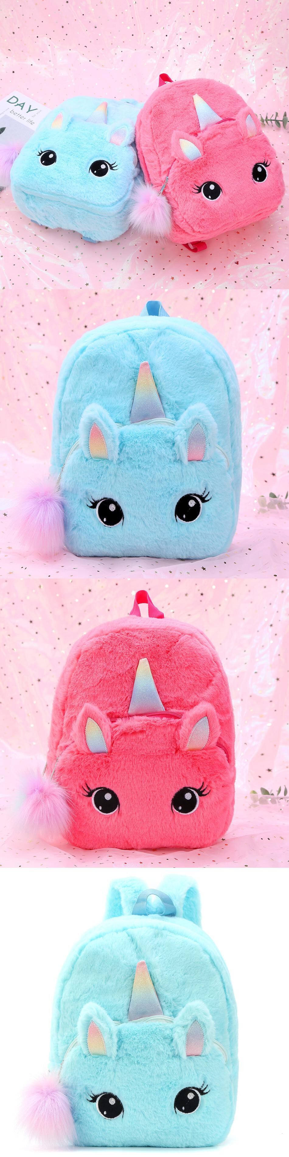 新作 かわいい漫画のバックパック 3D ぬいぐるみユニコーン通学子供キッズギフト学生ブックトラベルバッグ