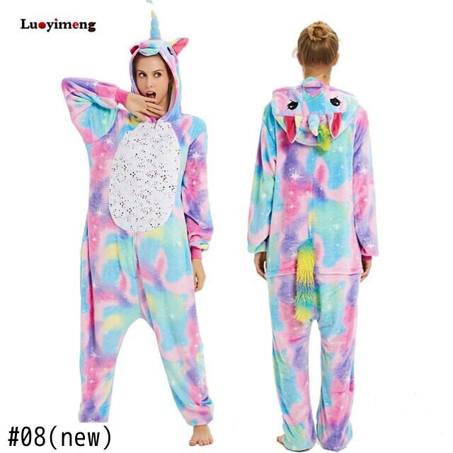 新作 冬の女性男性ユニセックス大人かわいい漫画カバーオール動物パジャマステッチ Unicornio ユニコーン着ぐるみフランネルネグリジェパジャマ