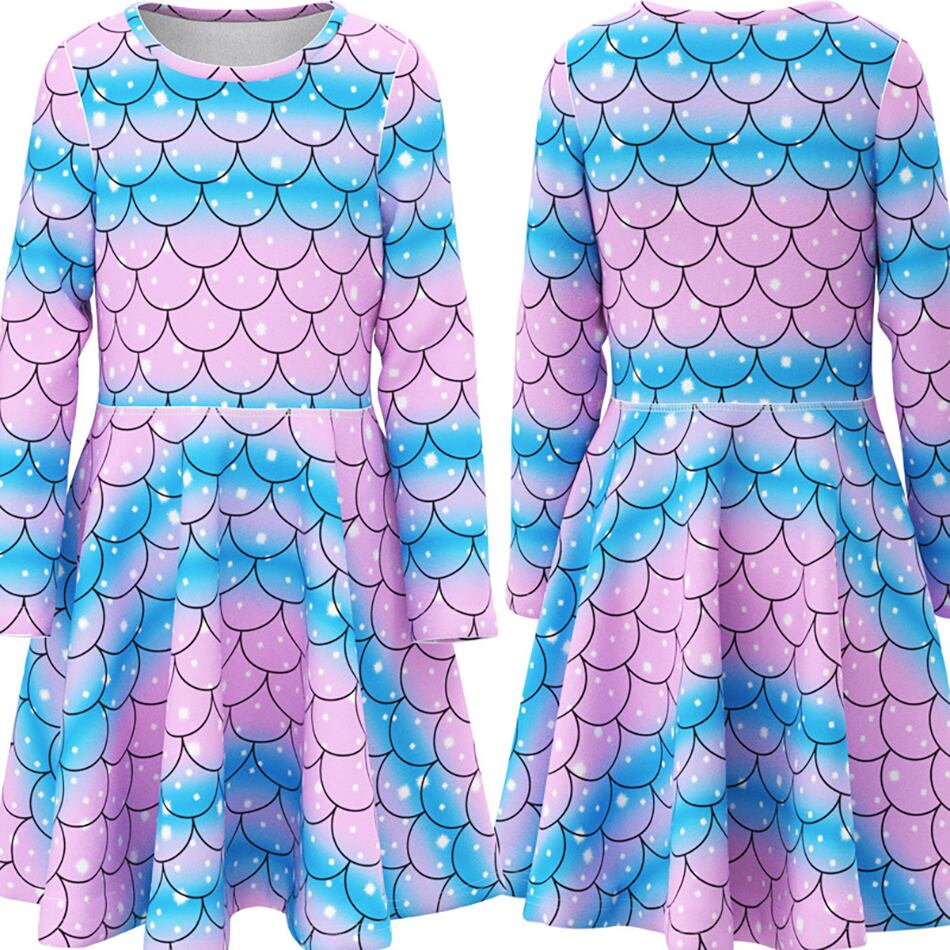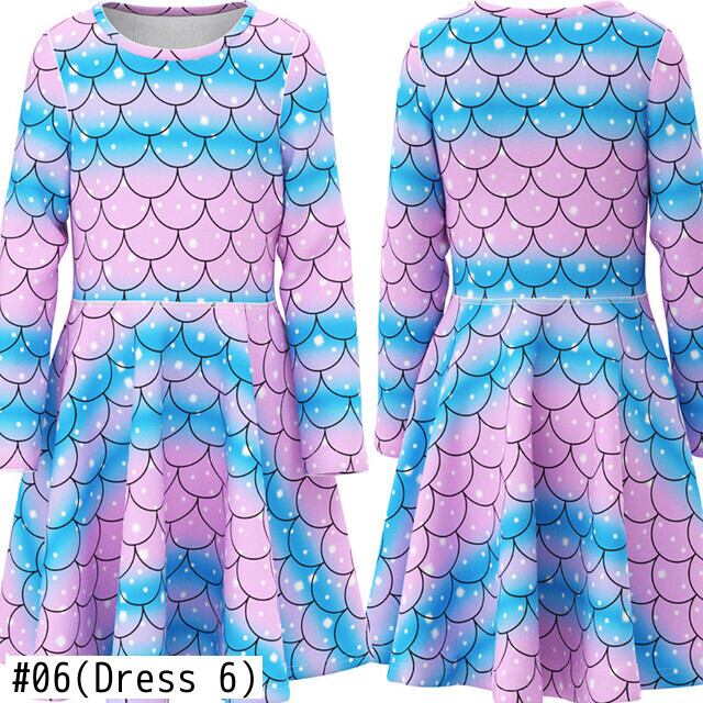 新作 2022 女の子ドレス子供長袖プリント子供ドレスアップ 2-10 年