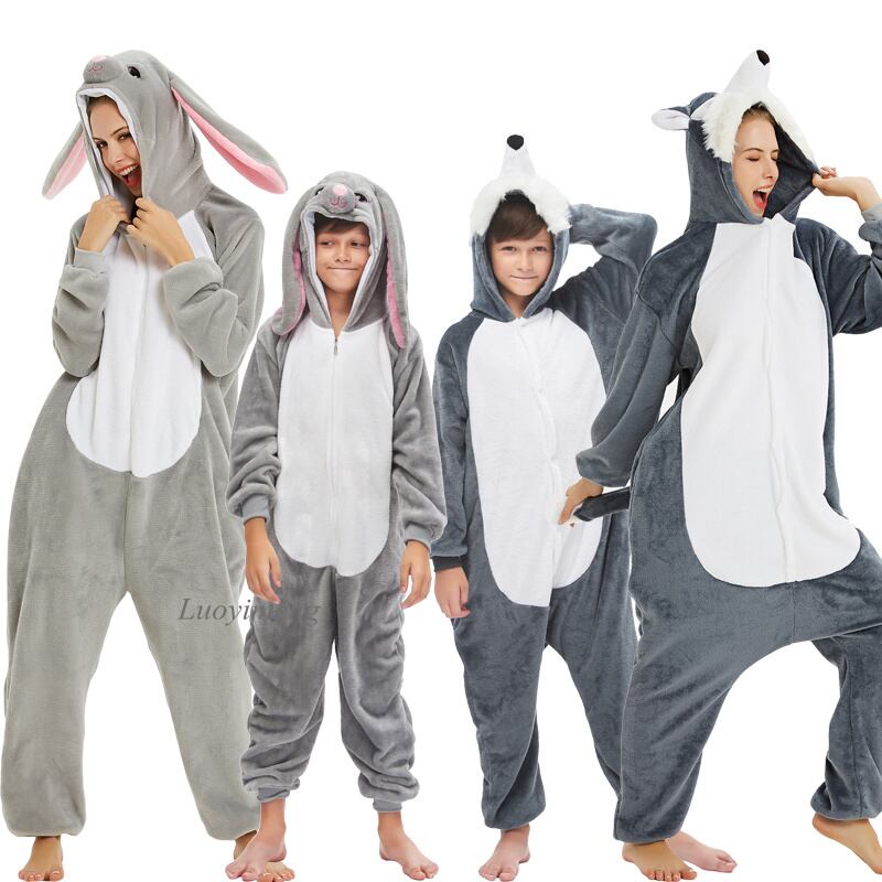 新作 冬動物オオカミカバーオール子供着ぐるみパジャマユニコーンパジャマ女性パジャマジャンプスーツガールボーイブランケット枕木オーバーオール