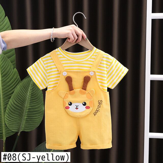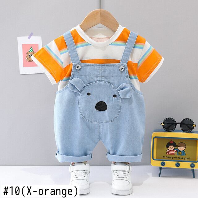 新作 夏の男の赤ちゃん服セットリトルボーイズ漫画ベアトップス Tシャツストラップパンツ 2 個スタイル女の子スーツ生まれのオーバーオール
