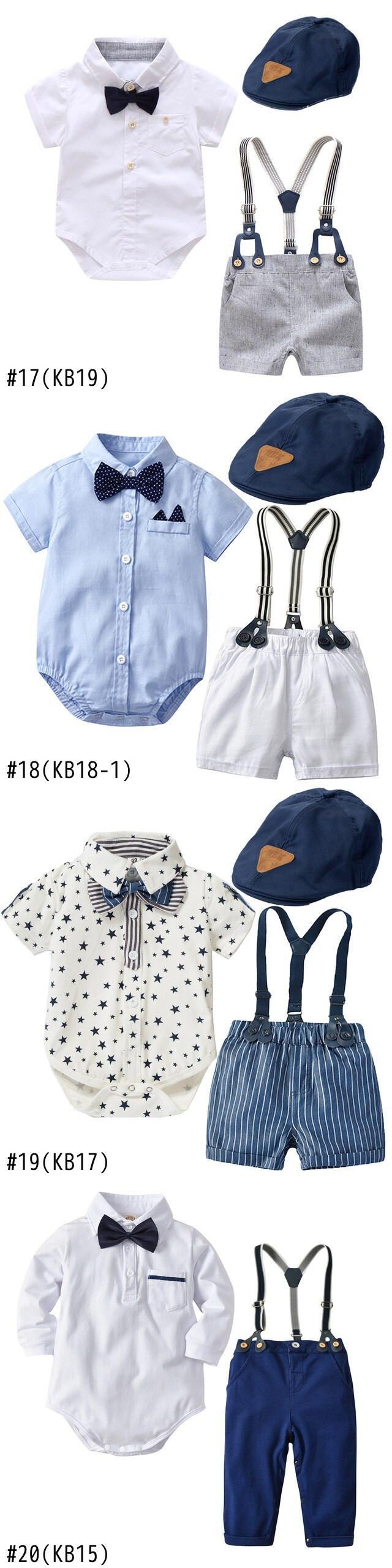 新作 夏の幼児男の子紳士スーツ幼児子供半袖蝶ネクタイシャツ + サスペンダーショーツ男の赤ちゃん服衣装 0-24M