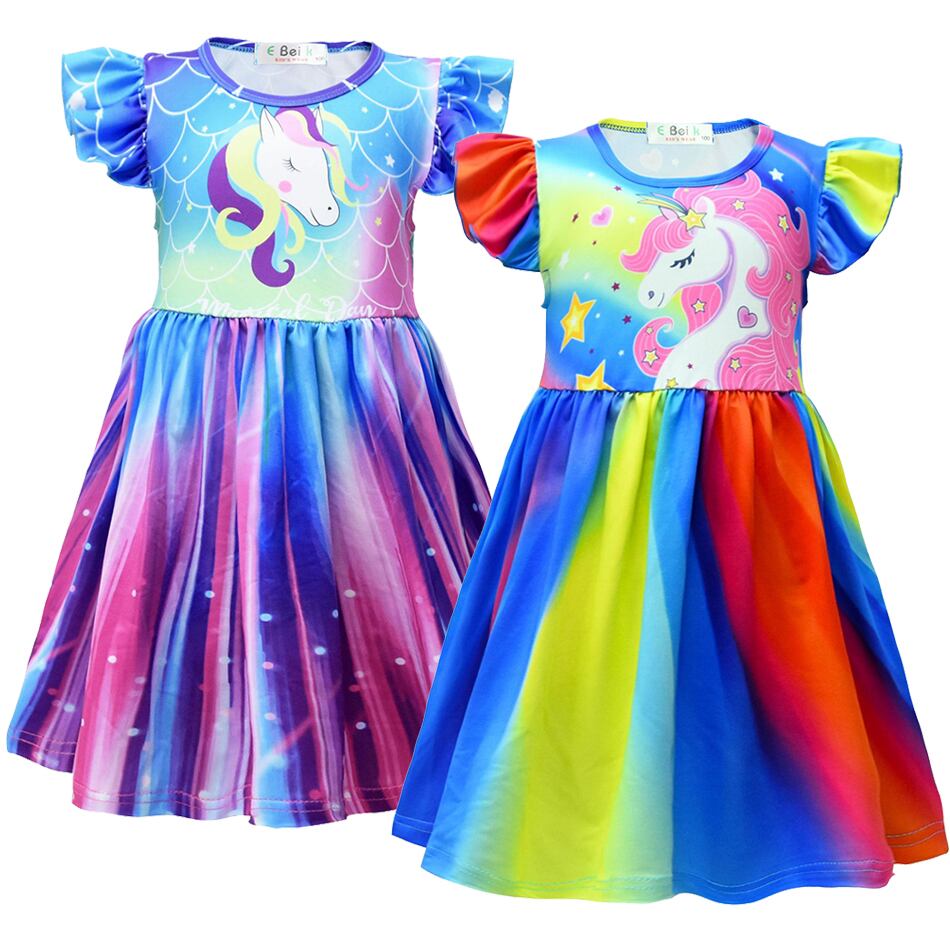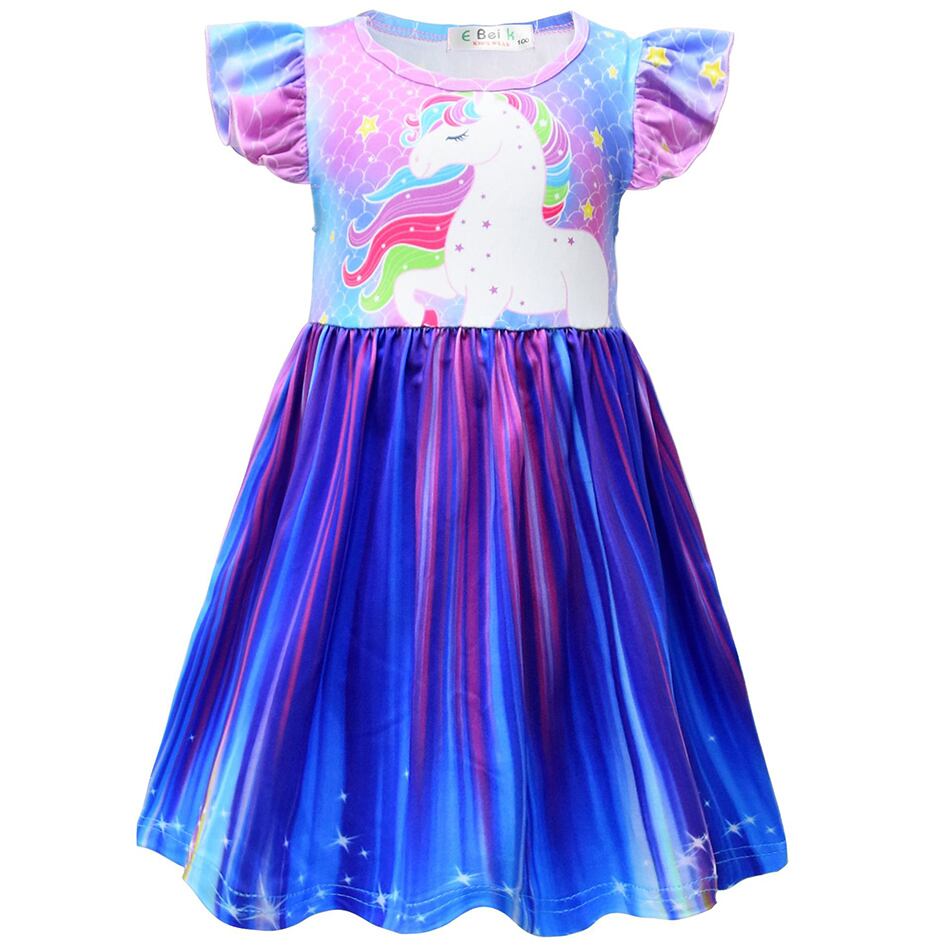 新作 女の子ドレス 2022 夏子供ドレスベビーキッズ服子供の誕生日パーティーユニコーンプリント