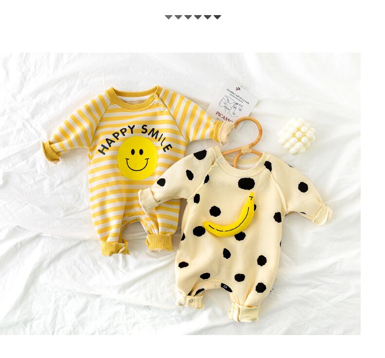 新作 秋冬ベビー服バナナロンパースコットンパジャマ新生児服少年少女ボディスーツスマイルストライプ幼児ジャンプスーツ