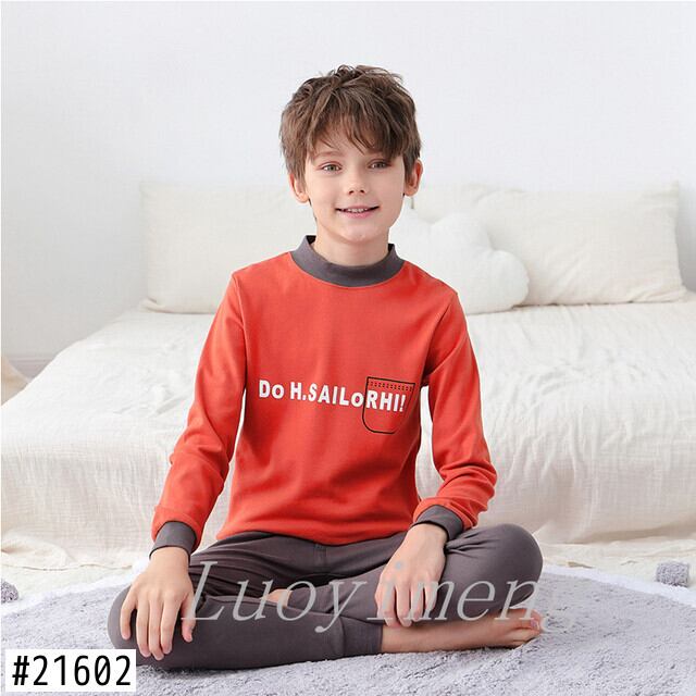 新作 2022 春の子供の綿セット長袖パジャマ子供十代の服パジャマボーイズパジャマビッグボーイズナイト衣装 5-18yrs