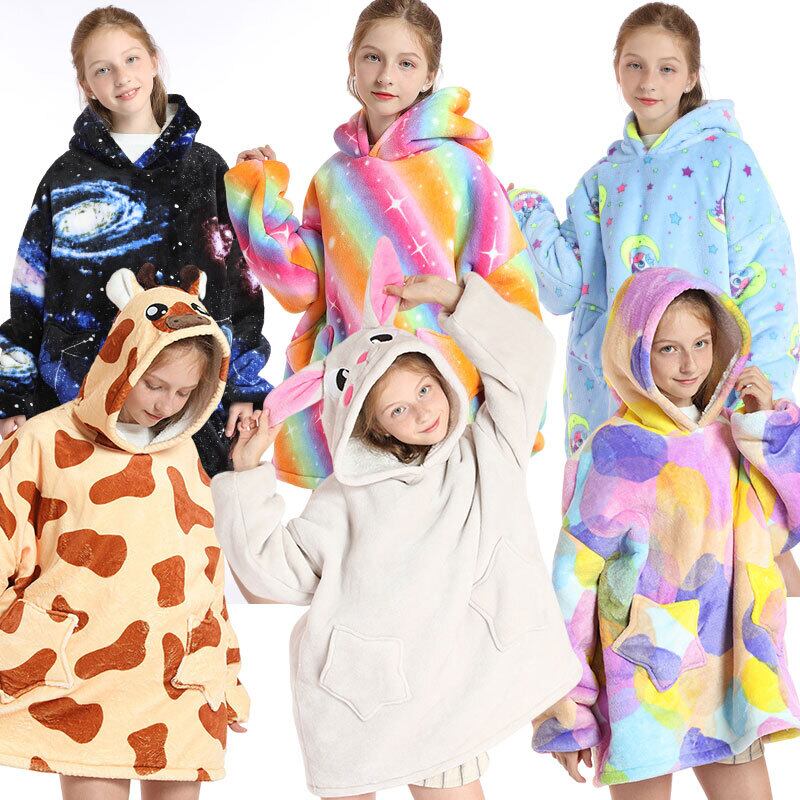 新作 キッズスウェットシャツ女の赤ちゃん服動物フードブランケット厚く暖かいプルオーバー冬のフリーススウェットシャツテレビブランケット特大パーカー