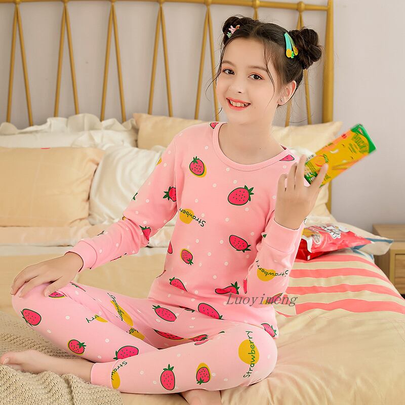 新作 子供パジャマセットキッズガールズパジャマ冬の綿のパジャマの女の子長袖ホームウェアパジャマ十代のホーム服
