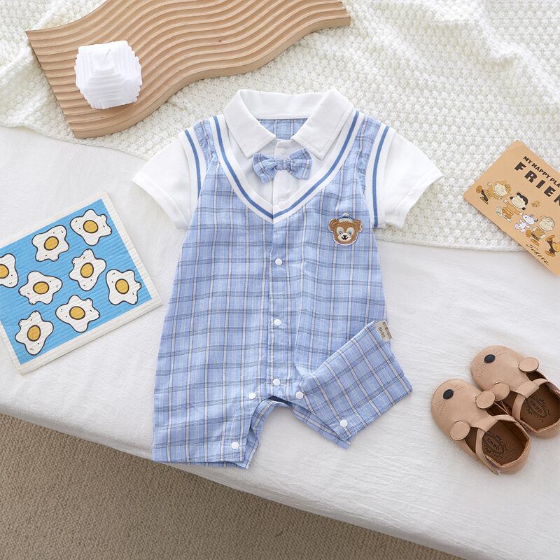 新作 女の赤ちゃん服ジャンプスーツロンパース 0-12M Infantil 幼児新生児ボディスーツ衣装格子縞の学生スタイルドレス生まれの服