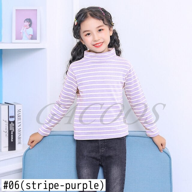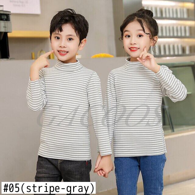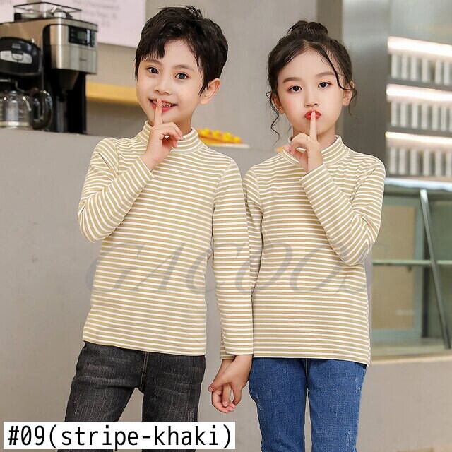 新作 ベビーキッズ服ガールズボーイズ Tシャツトップス秋長袖ストライプ Tシャツ十代の若者たちタートルネック底入れシャツ子供