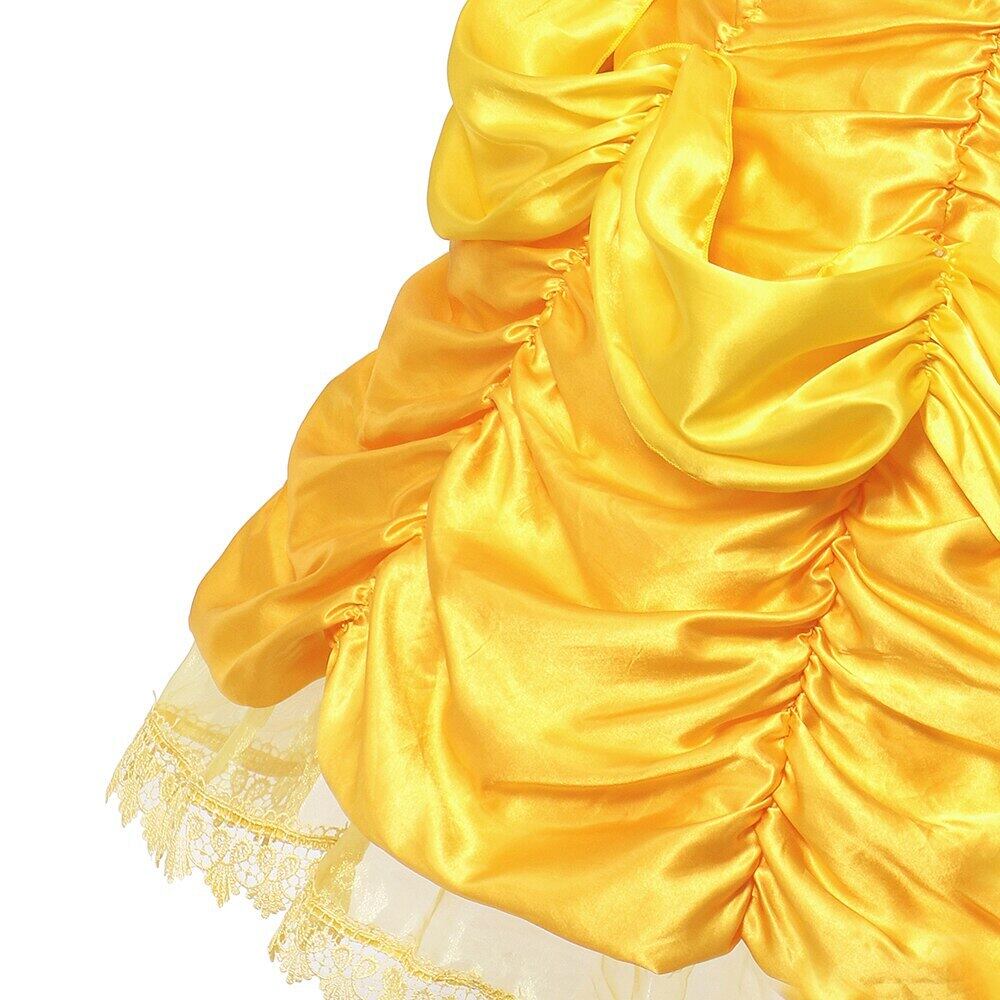 新作 美女と野獣ベル夜会服ガールズページェントプリーツドレスイエローレースパーティー Frocks キッズコスプレ