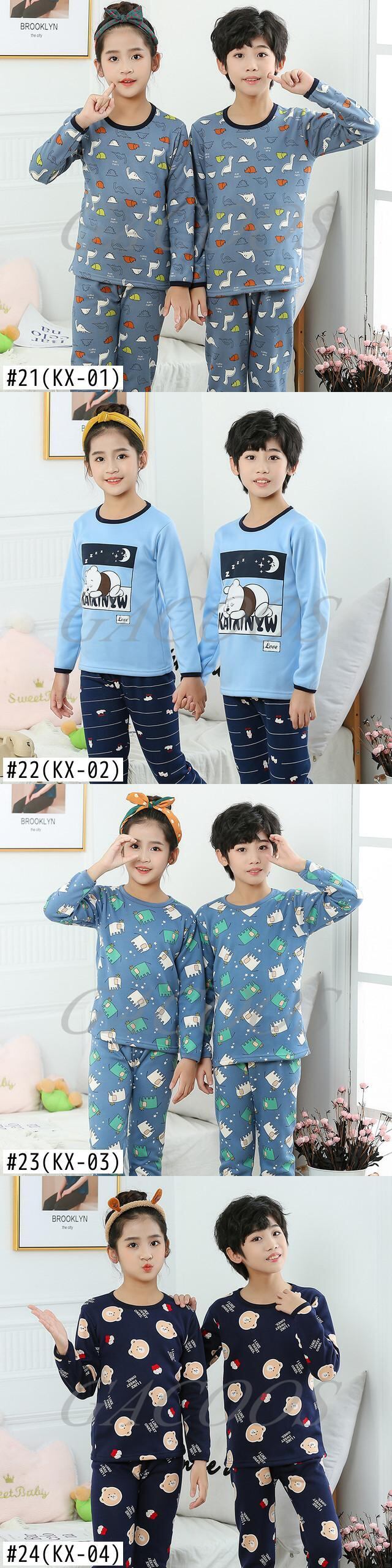 新作 冬の子供のパジャマセット厚く暖かい子供パジャマ漫画パジャマ男の子女の子スーツ服ホームウェアナイトウェア