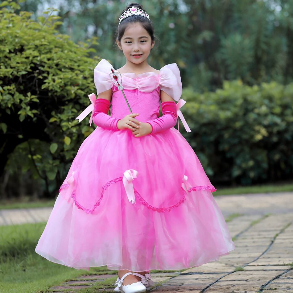 新作 ドレスアップ女の子眠れる森の美女オーロラコスプレのパーティー子供オフショルダークリスマス夜会服