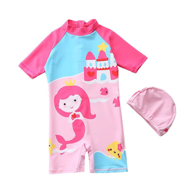 新作 女の赤ちゃんワンピース水着帽子付きかわいい人魚の尾子供水着子供水着子供ビーチ衣装水泳服