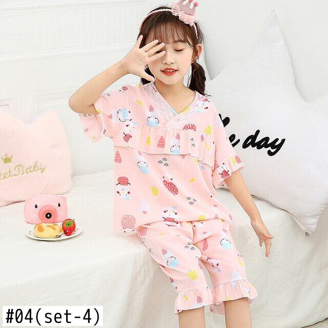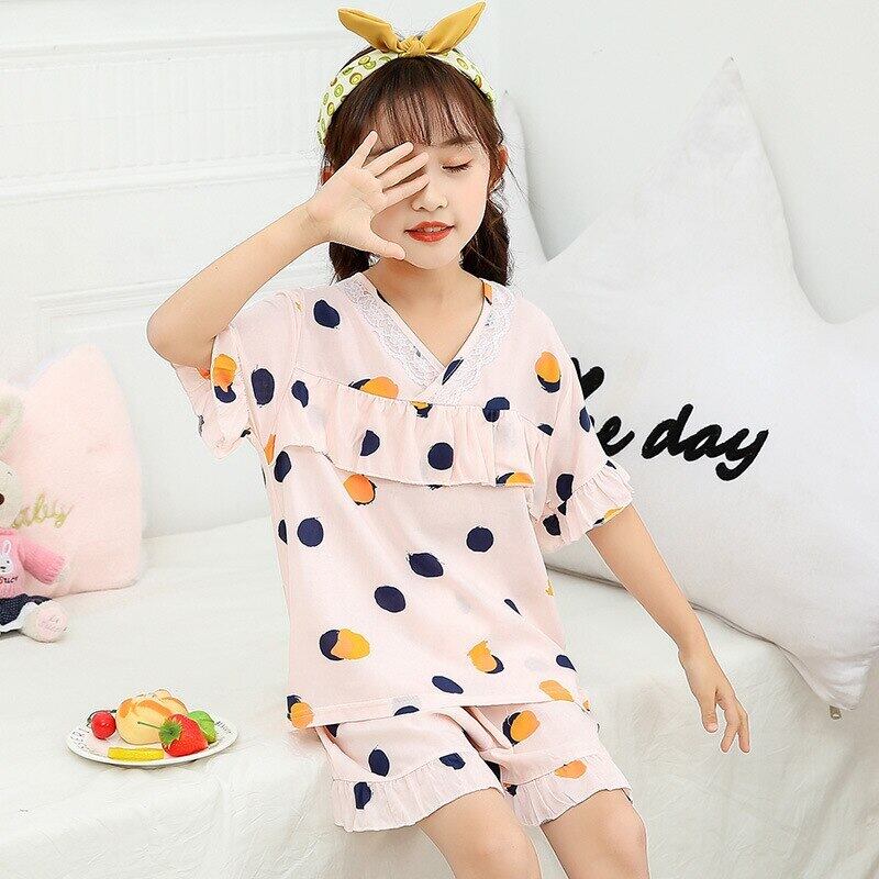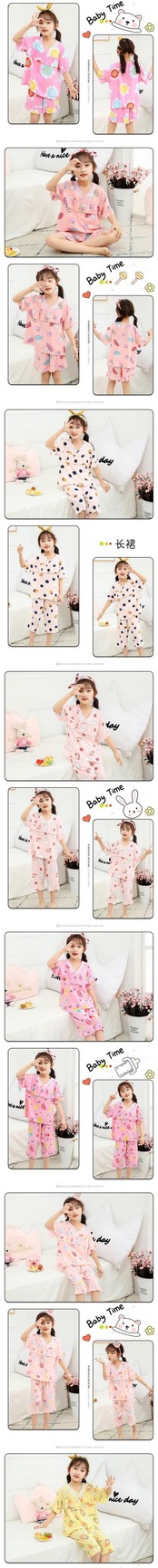 新作 幼児の女の子服夏半袖セット漫画プリントパジャマパジャマセット十代の少女通気性のホームウェア衣装